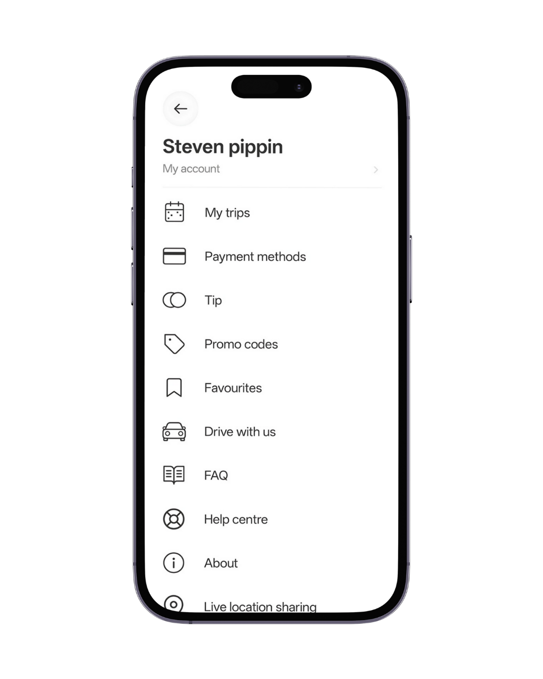 With your own intuitive menu you can change payment methods as well as look at historical trips, add a tip to your journey or if you're having an issue with the app there's even a way to get in touch.