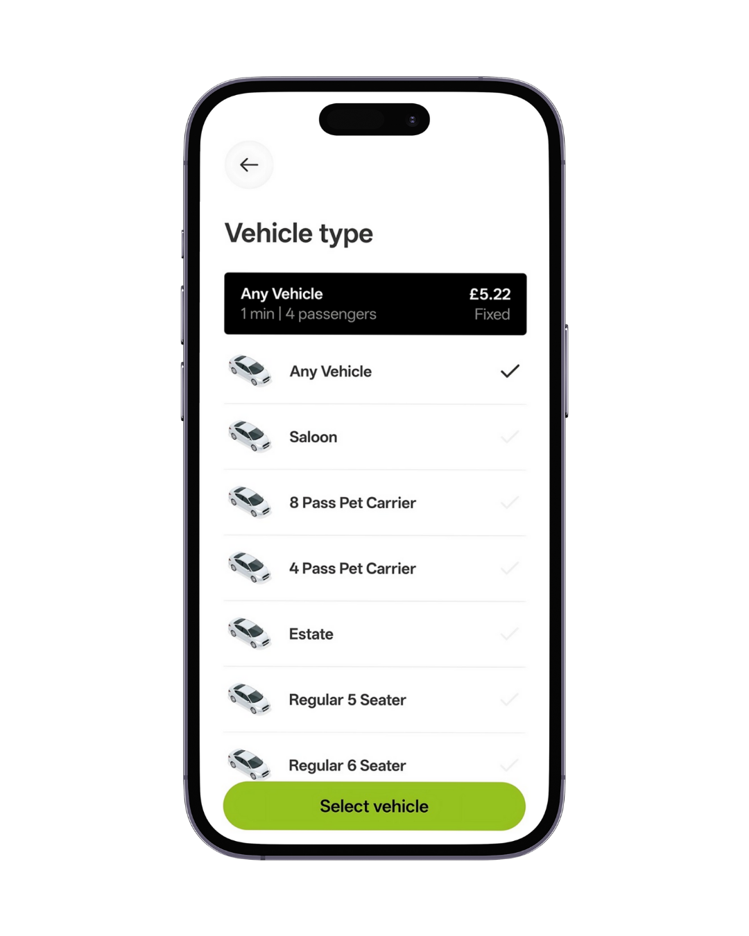 Choose from the widest range of vehicle types including estate vehicles, pet friendly as well as multi-seaters and wheelchair accessible all available via our easy to use booking app.